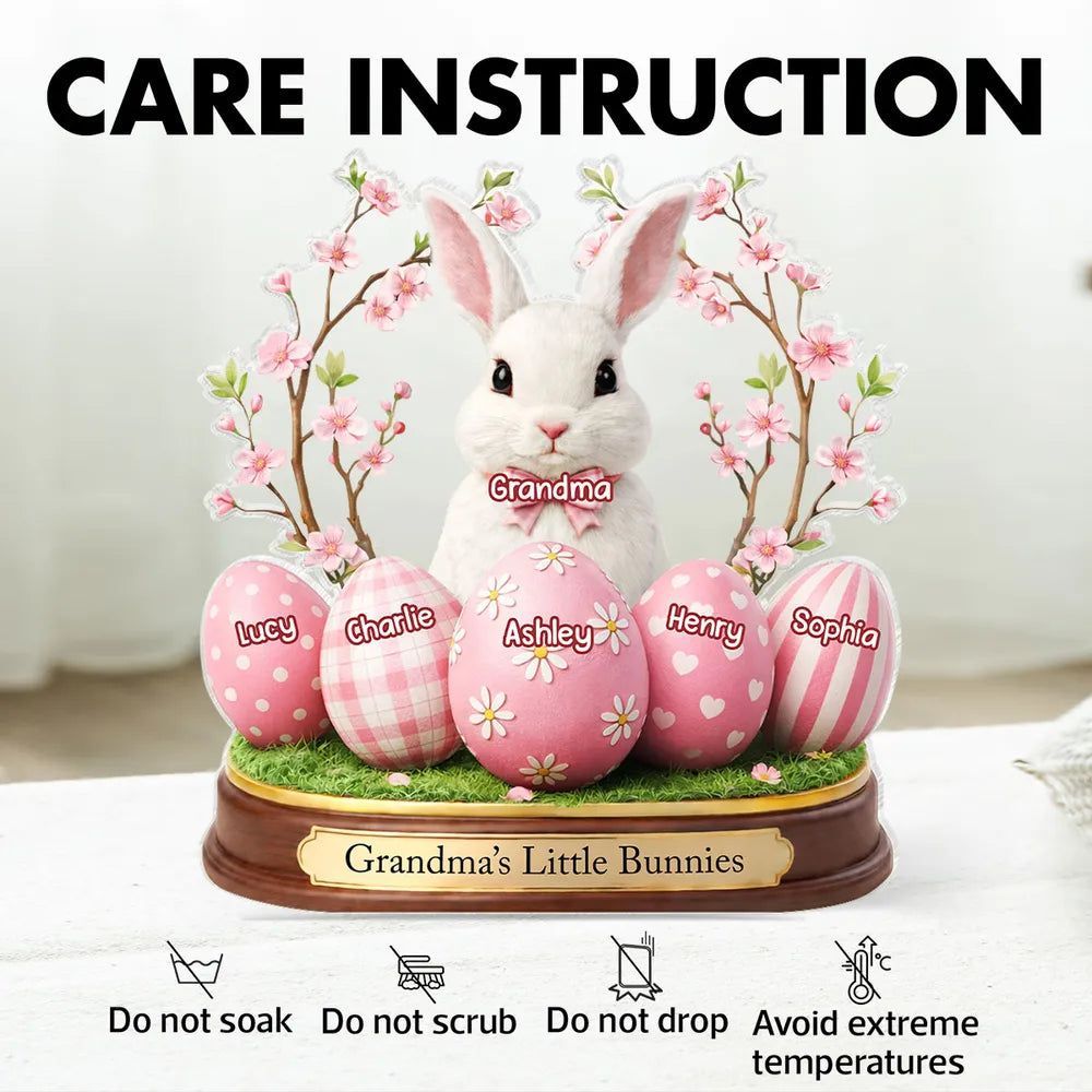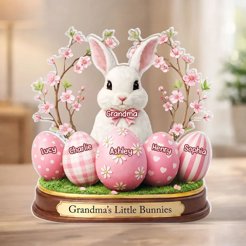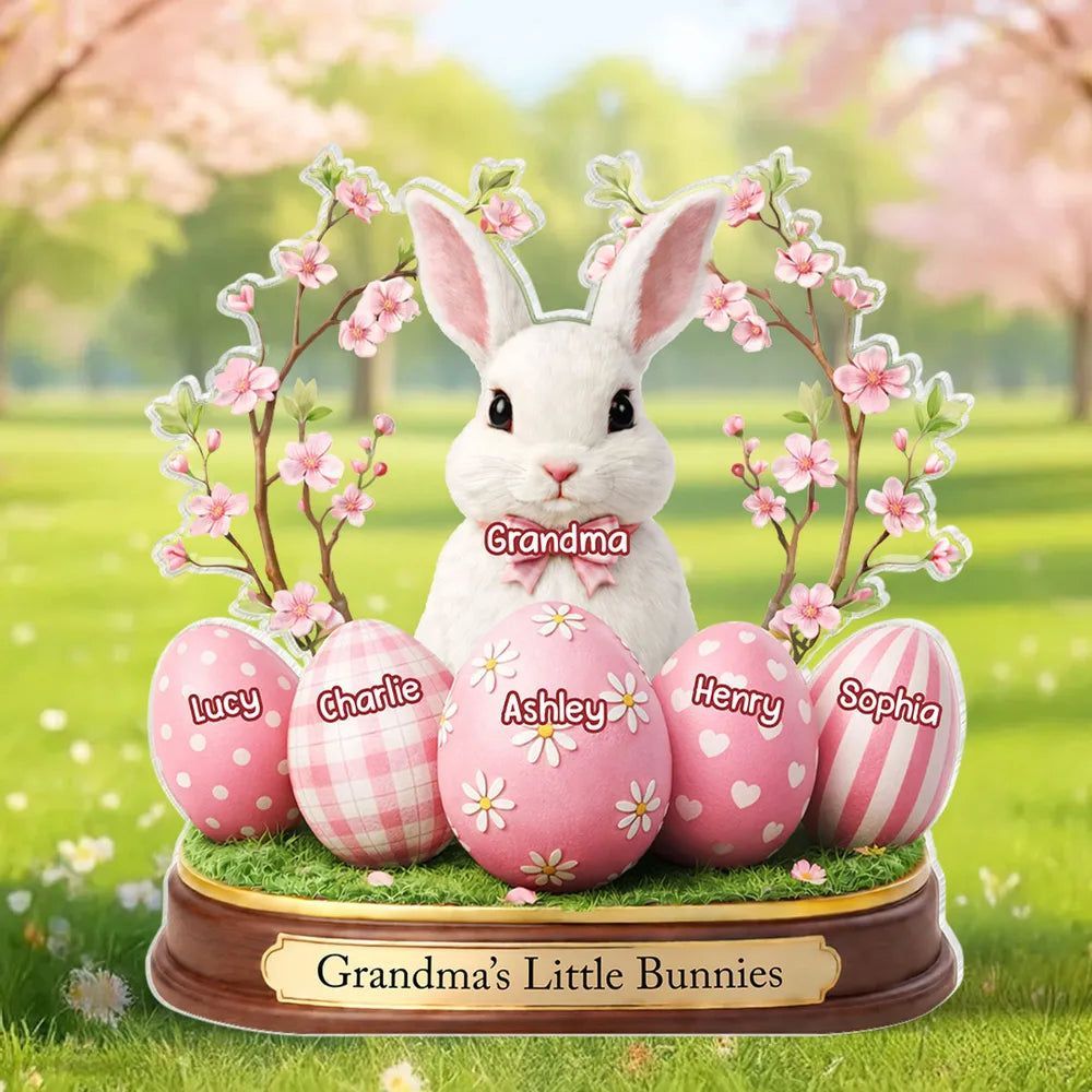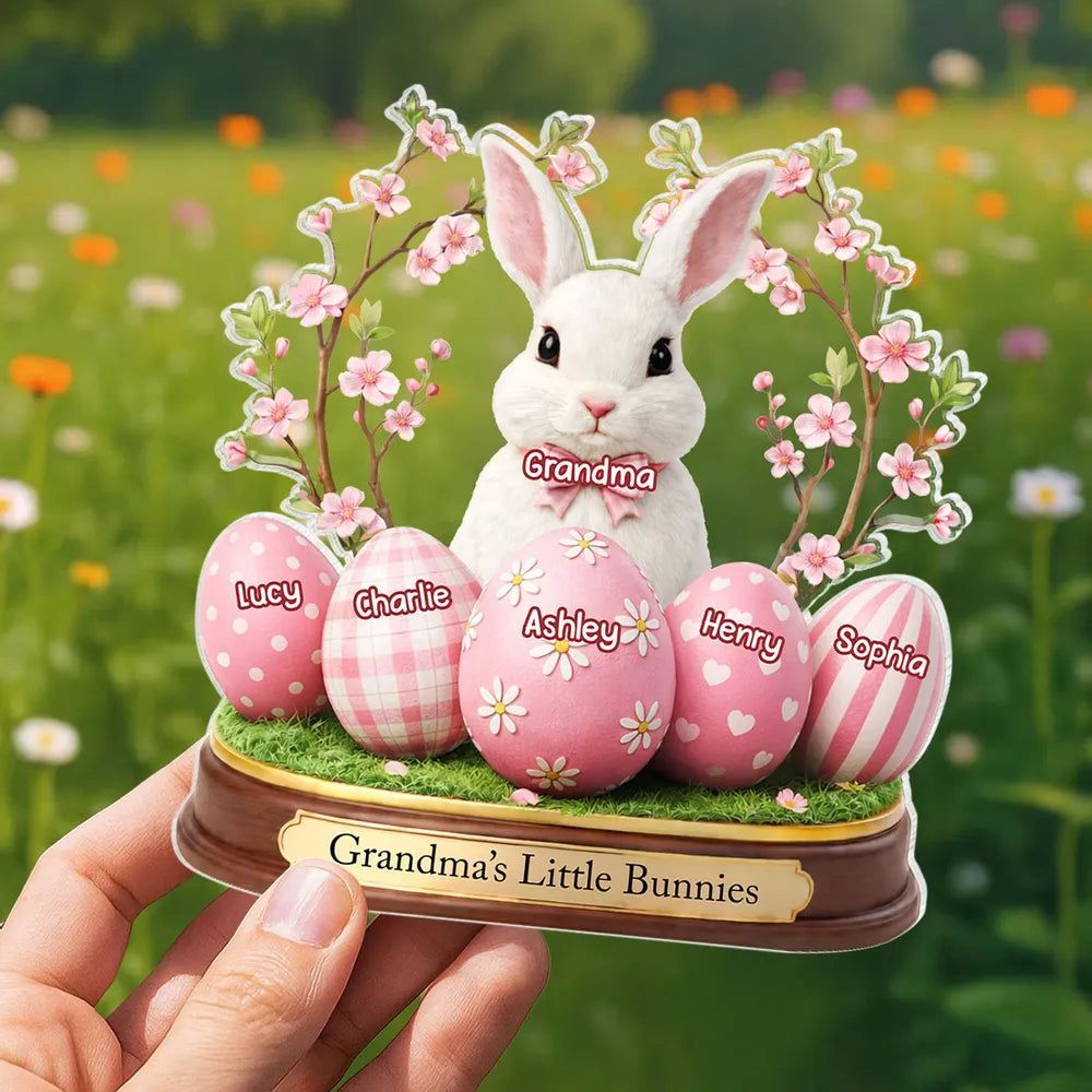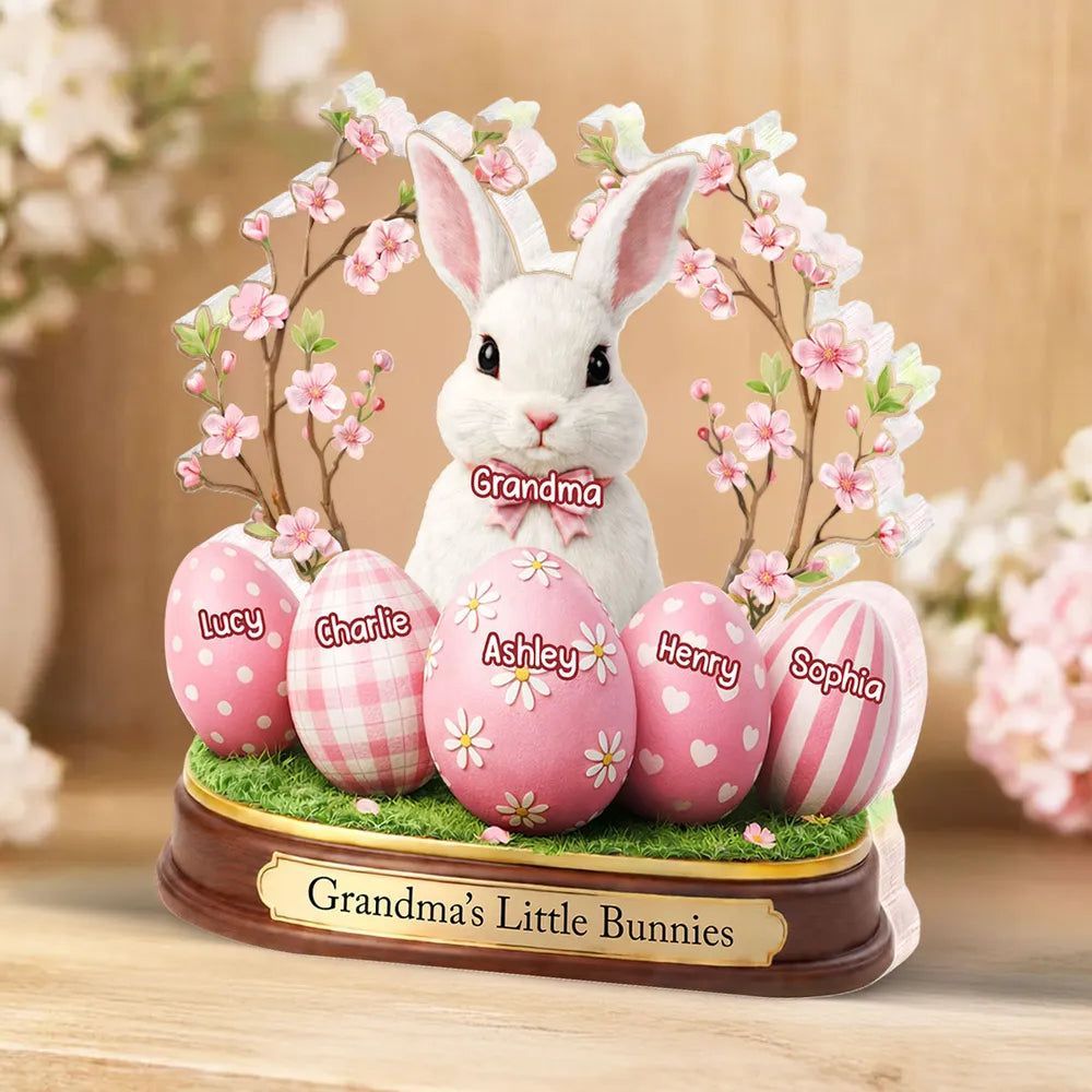 Grandma's Little Bunnies Shaped Acrylic Block Plaque, Personalized Easter Shelf Decor - Heartwarming Gift for Grandma