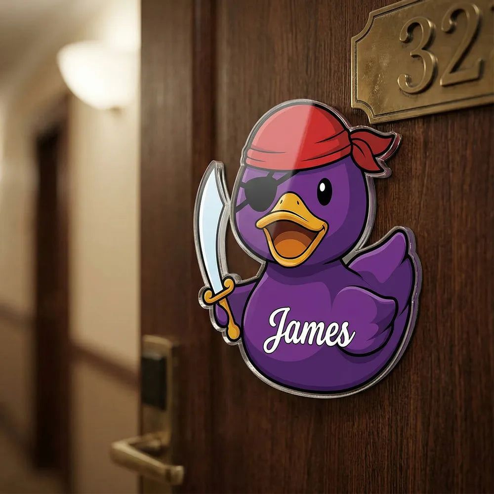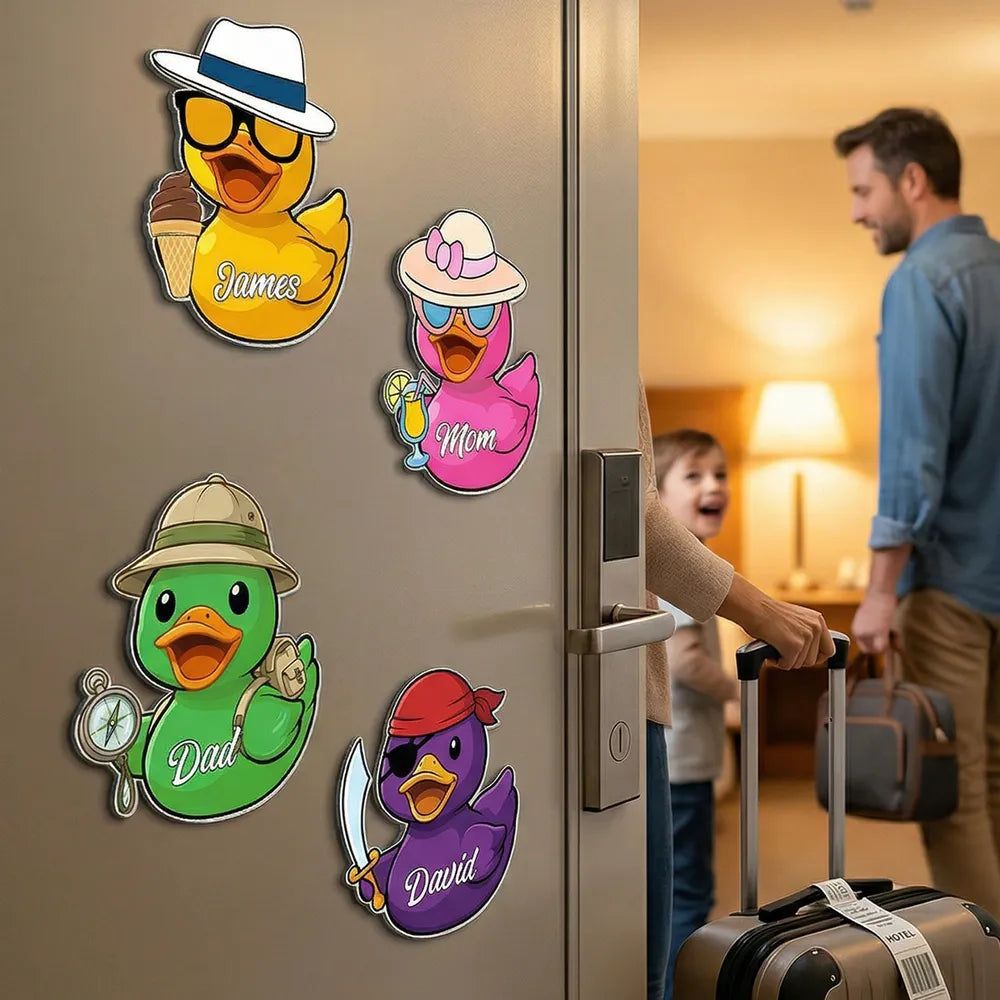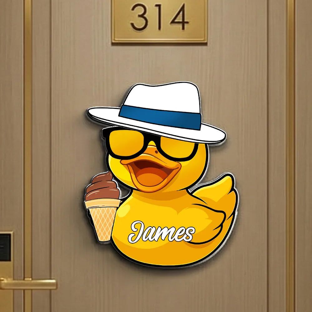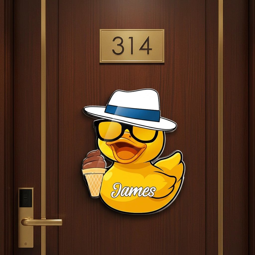 This cool duck in a white hat and shades, holding an ice cream, brings bright, playful vacation vibes. The clear print and vibrant colors pop on the door and get compliments from day one.