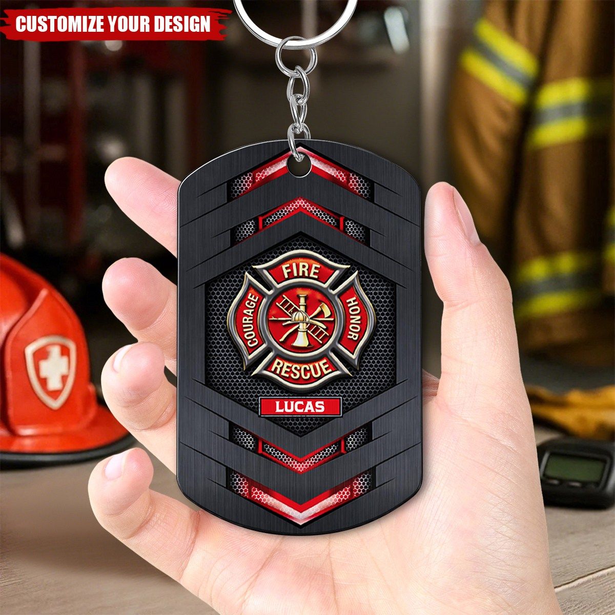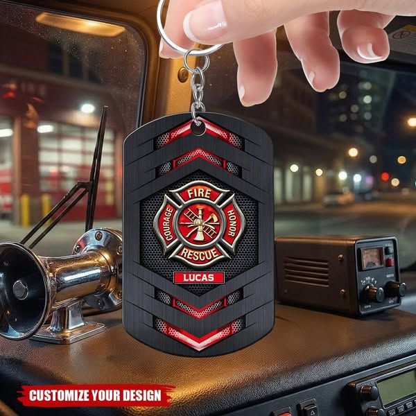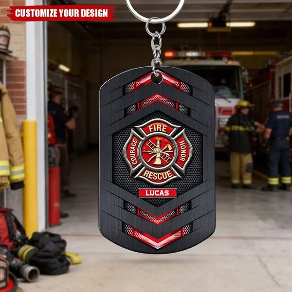 Fire Rescue Courage Honor, Stainless Steel Keychain, Gift For Firefighters