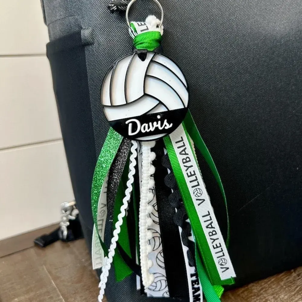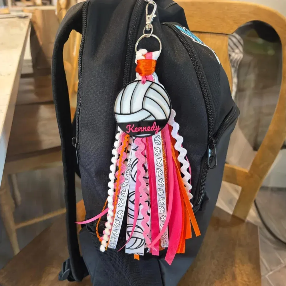 Personalized Sport Tassel Bag Tag with Name, Custom Keychain Gift for Volleyball&Basketball&Soccer Players & Fans