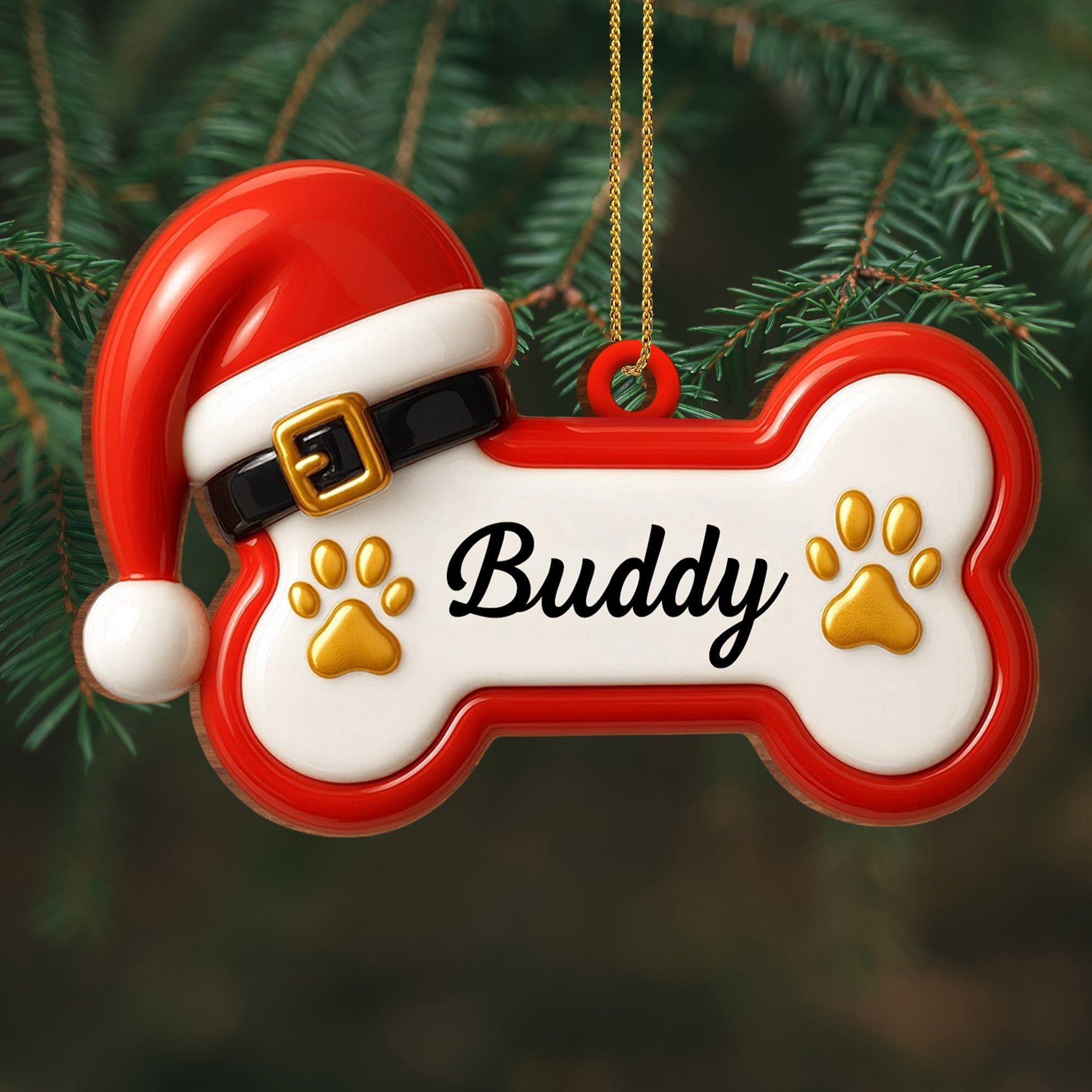 Celebrate Your Furry Friend's Christmas With Paw And Bone - Personalized Custom Wood Ornament, Custom Shaped