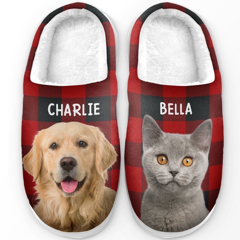 Custom Photo Fluffy Slippers - Personalized Birthday Gifts For Dog Cat Lovers, Dog Dad And Mom, Cat Owners - Happiness Is A Warm Puppy