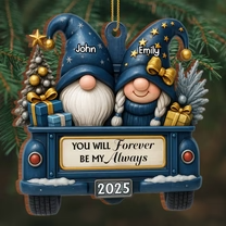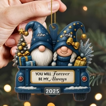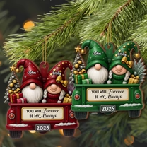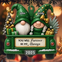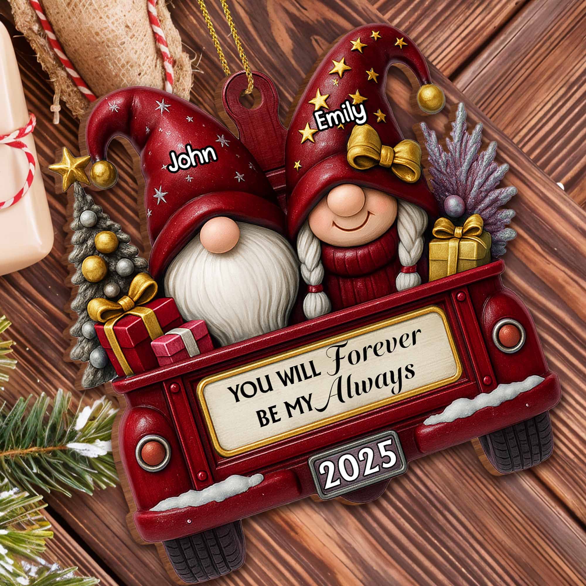You Will Forever Be My Always, Gnome and Vintage Truck, Personalized Wood Ornament, Gift for Couples and Family