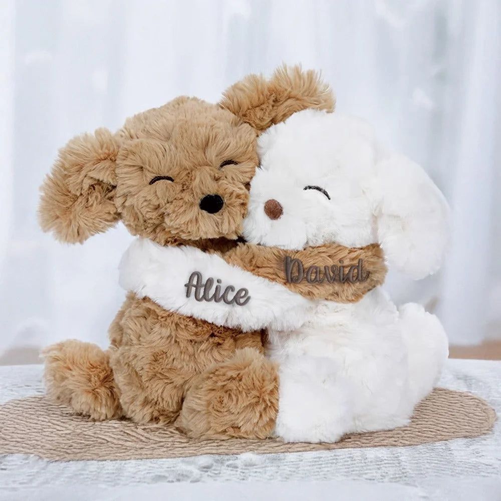 A Hug for My Cutie Love - (Set of 2) Personalized Scented Stuffed Bear Puppy Plush Toy Birthday Valentine's Day Gift