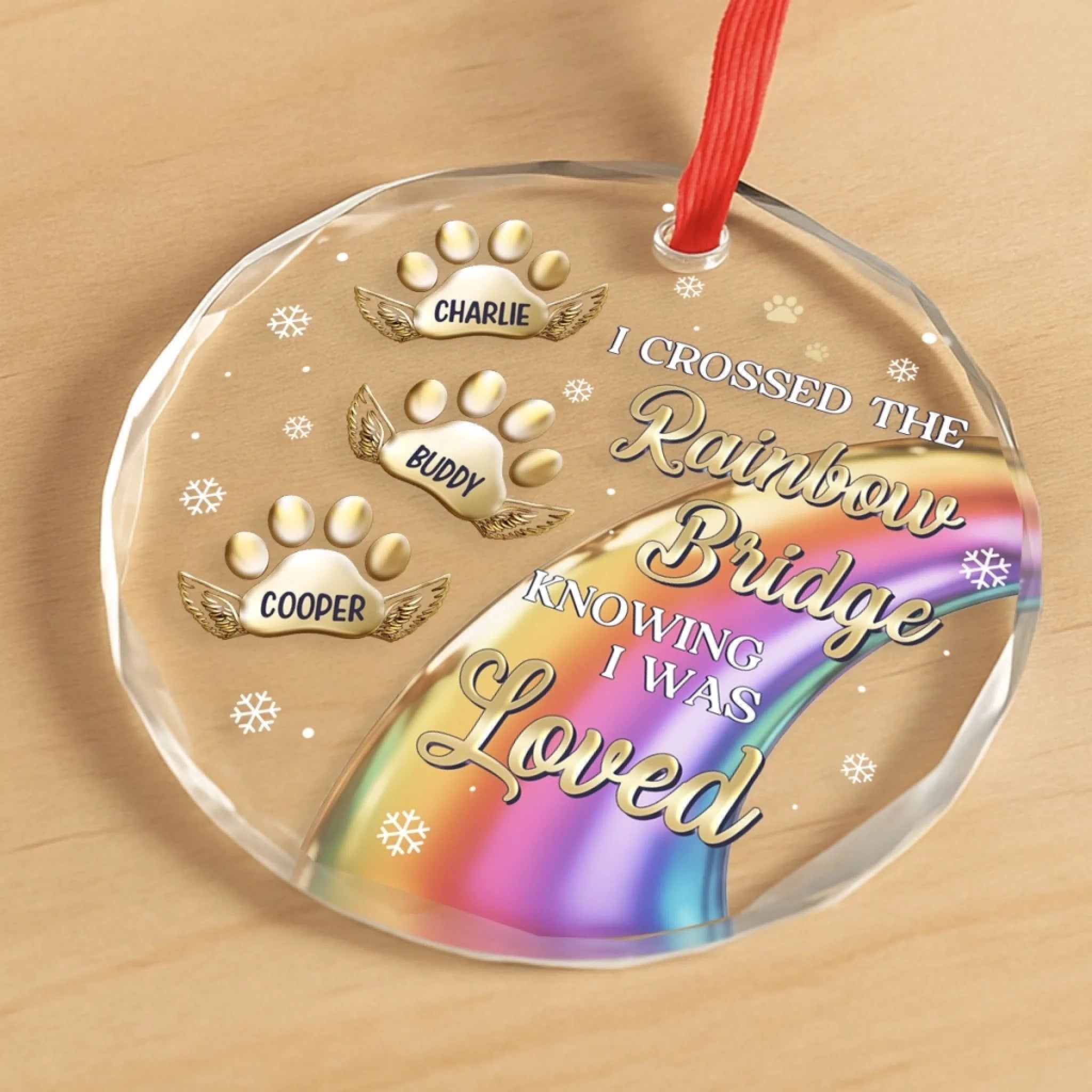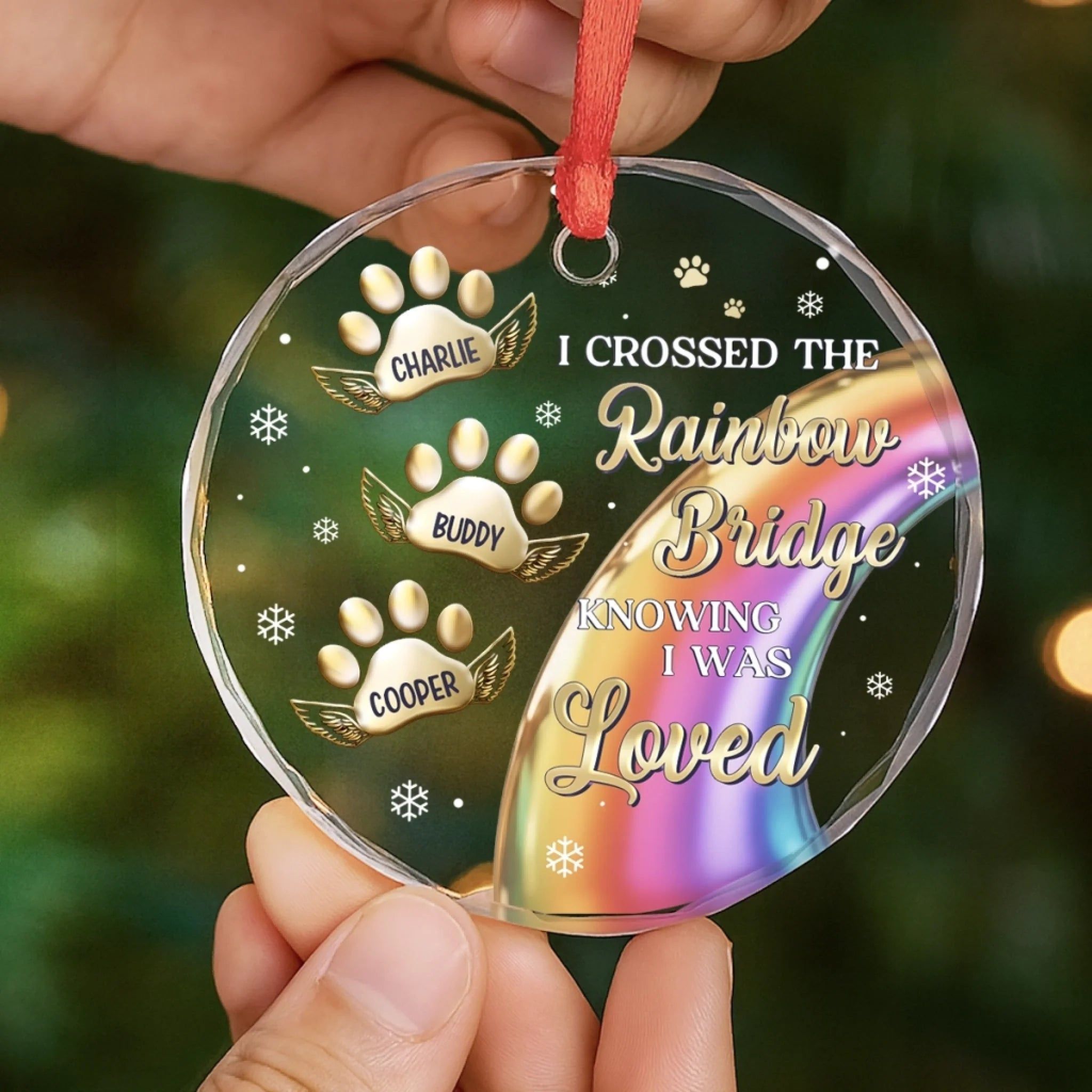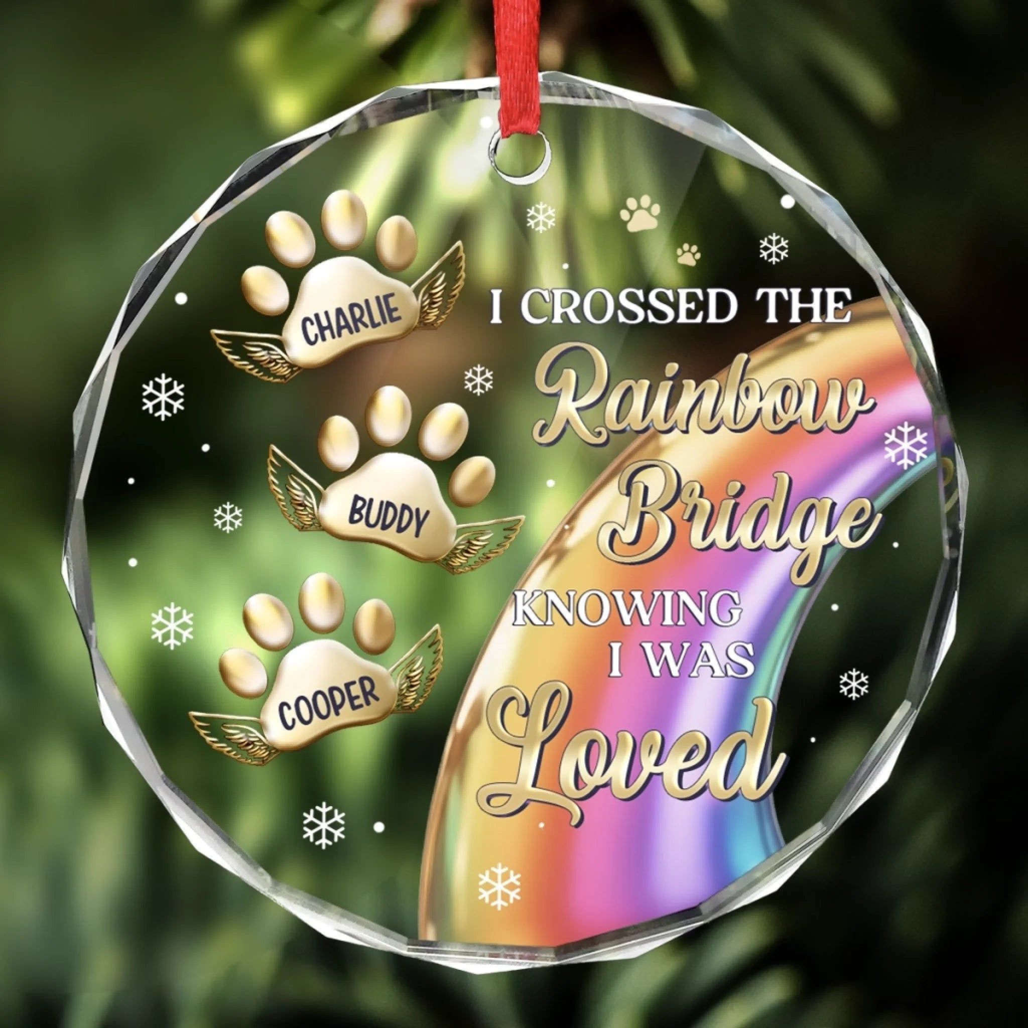 Custom Circle Glass Ornament - Personalized Pet Christmas Memorial Sympathy Gifts For Dogs, Cats - Crossed the Rainbow Loved