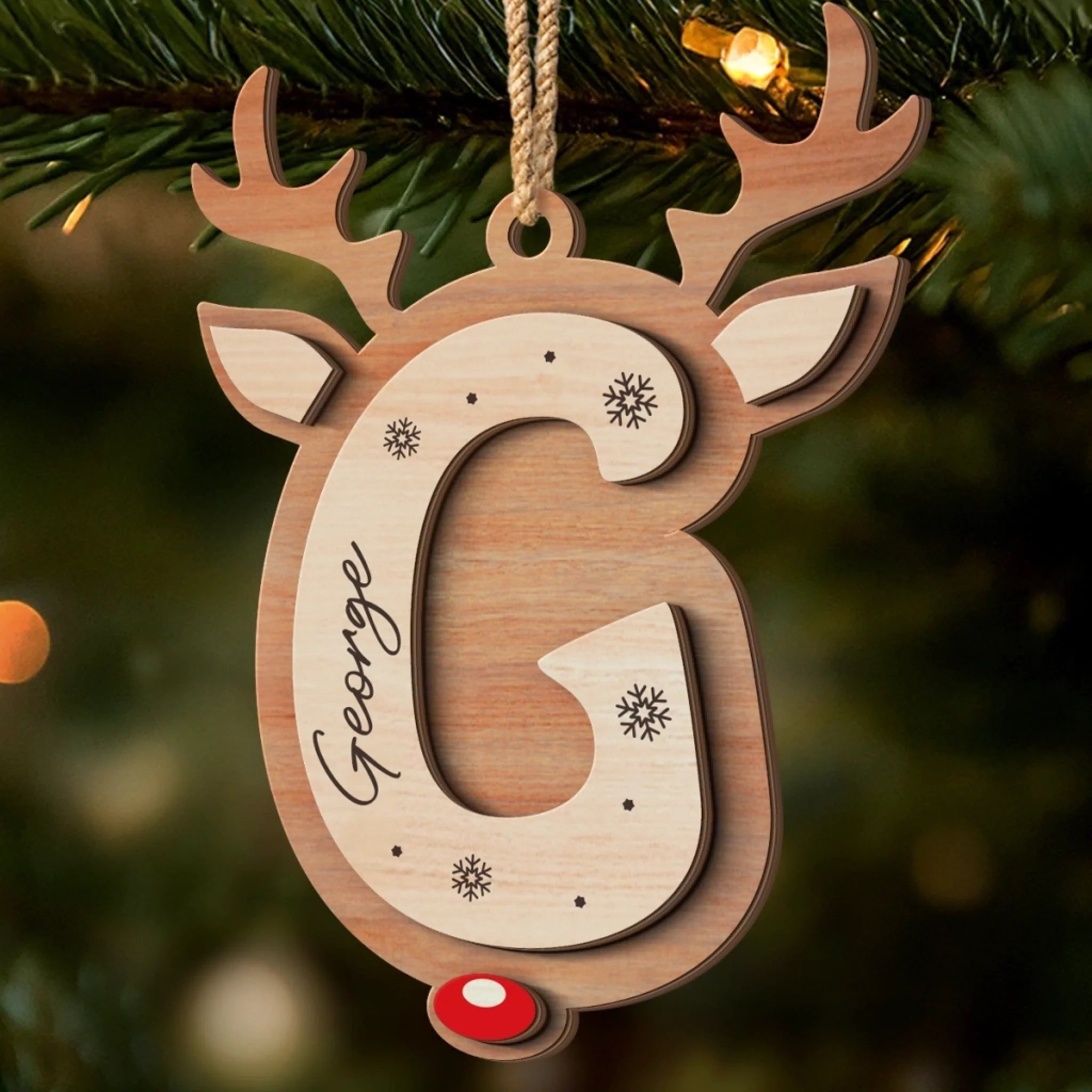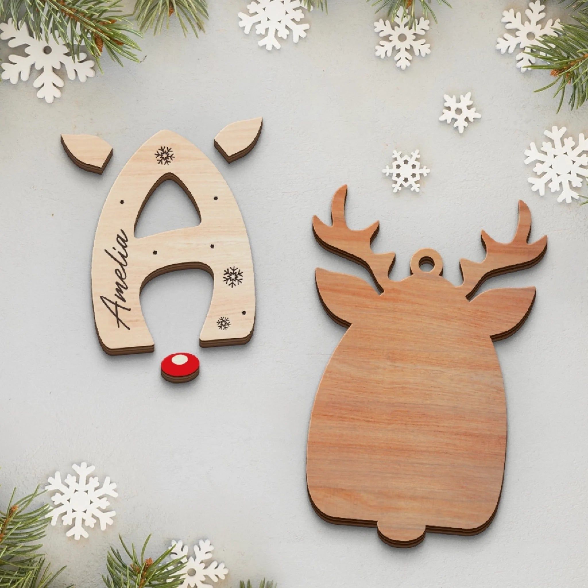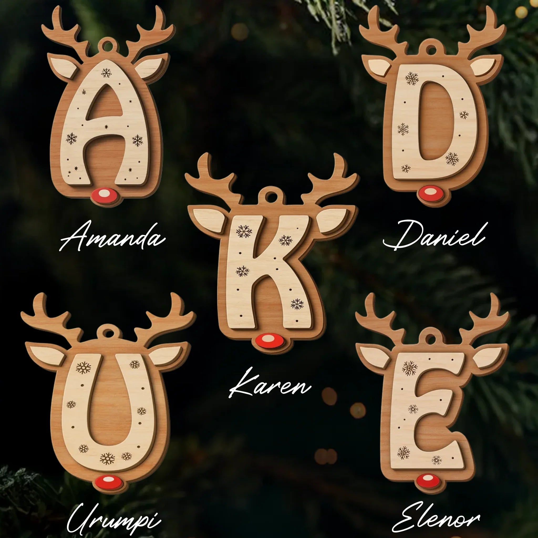 Personalized Wooden Reindeer Ornaments – Custom Double Layer Christmas Decorations for the Whole Family, Perfect Holiday & Birthday Gift