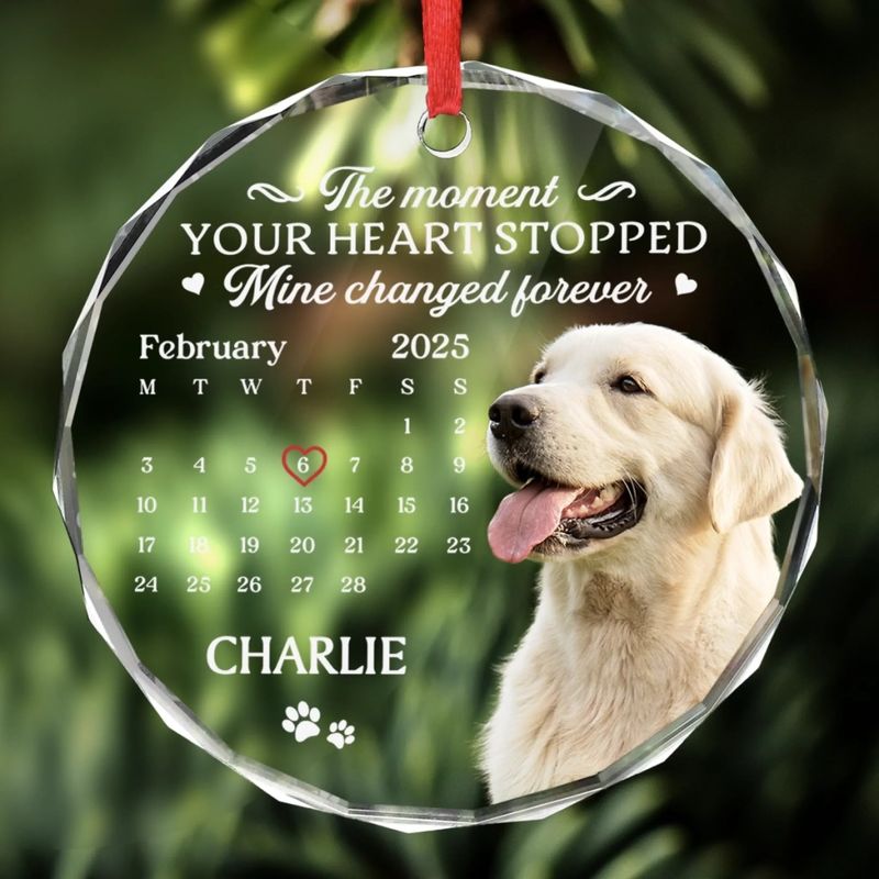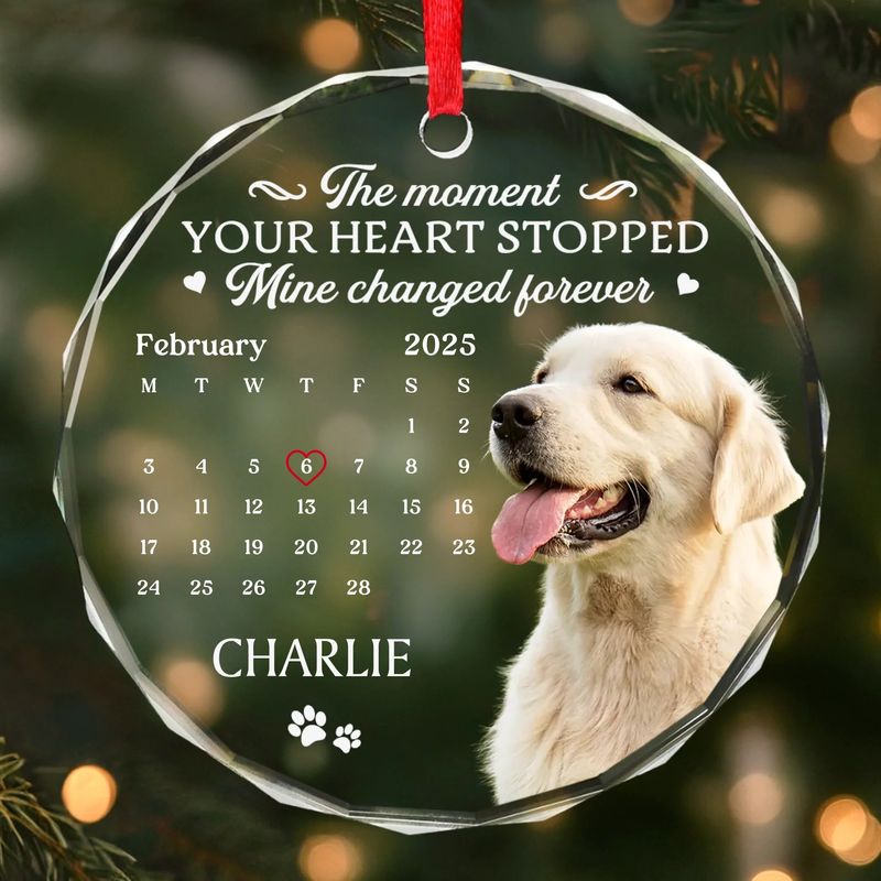 Custom Photo Circle Glass Ornament - Personalized Pet Christmas Memorial Sympathy Gifts For Dogs, Cats - Cherished Paws Forever In Our Hearts