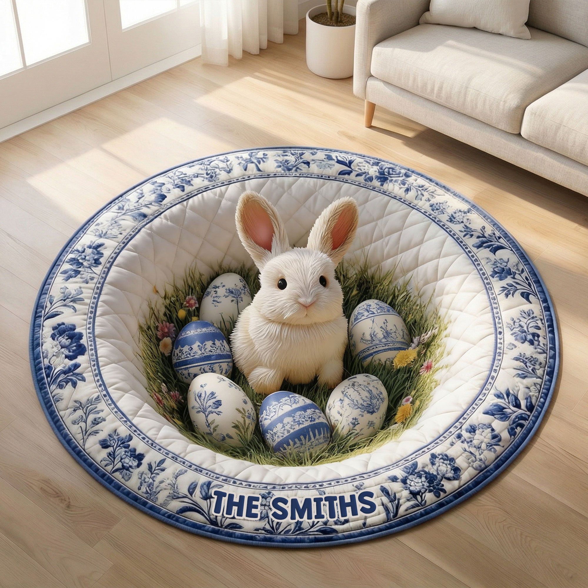 Easter Day Toile de Jouy Quilted Round Mat - Personalized Gifts For Easter Day Quilted Round Mat
