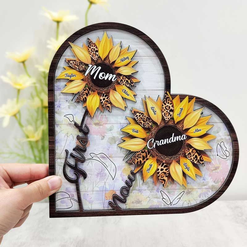 First Mom Now Grandma - Gift For Mothers, Grandmas, Aunties - Personalized 2-Layered Wooden Plaque With Stand