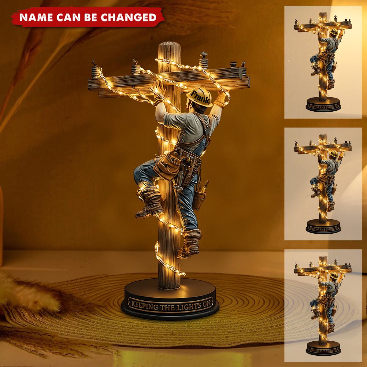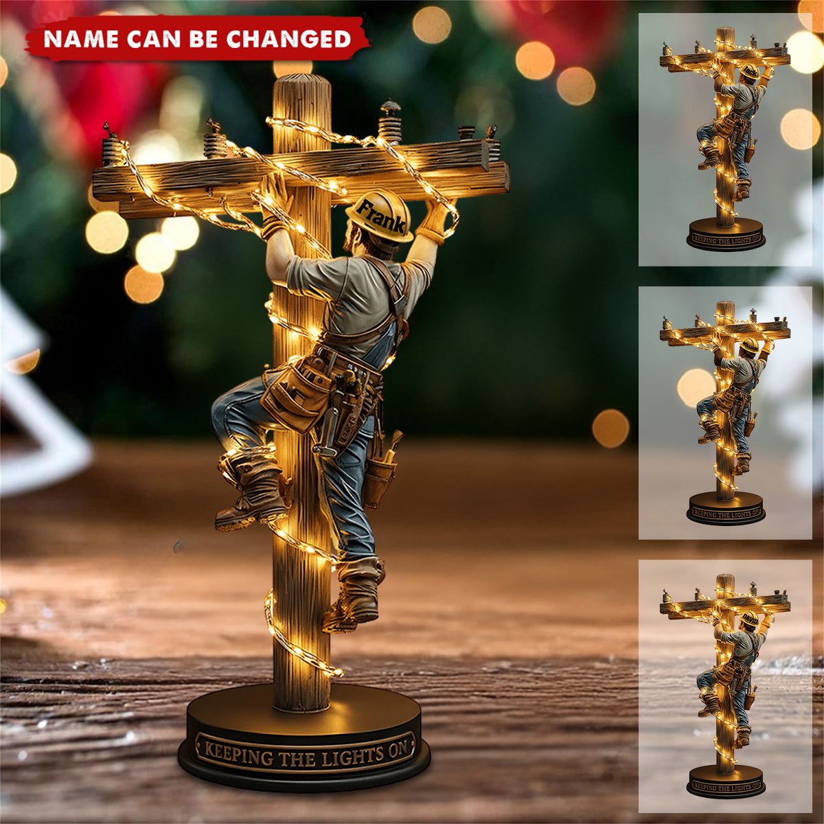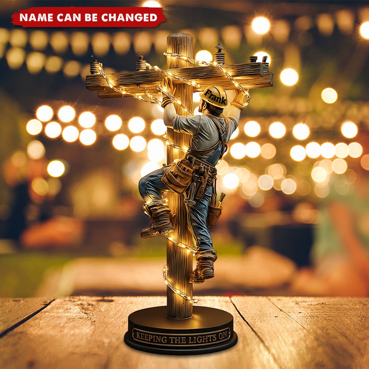 Keeping The Lights On - Personalized Lineman Custom Shaped Acrylic Plaque