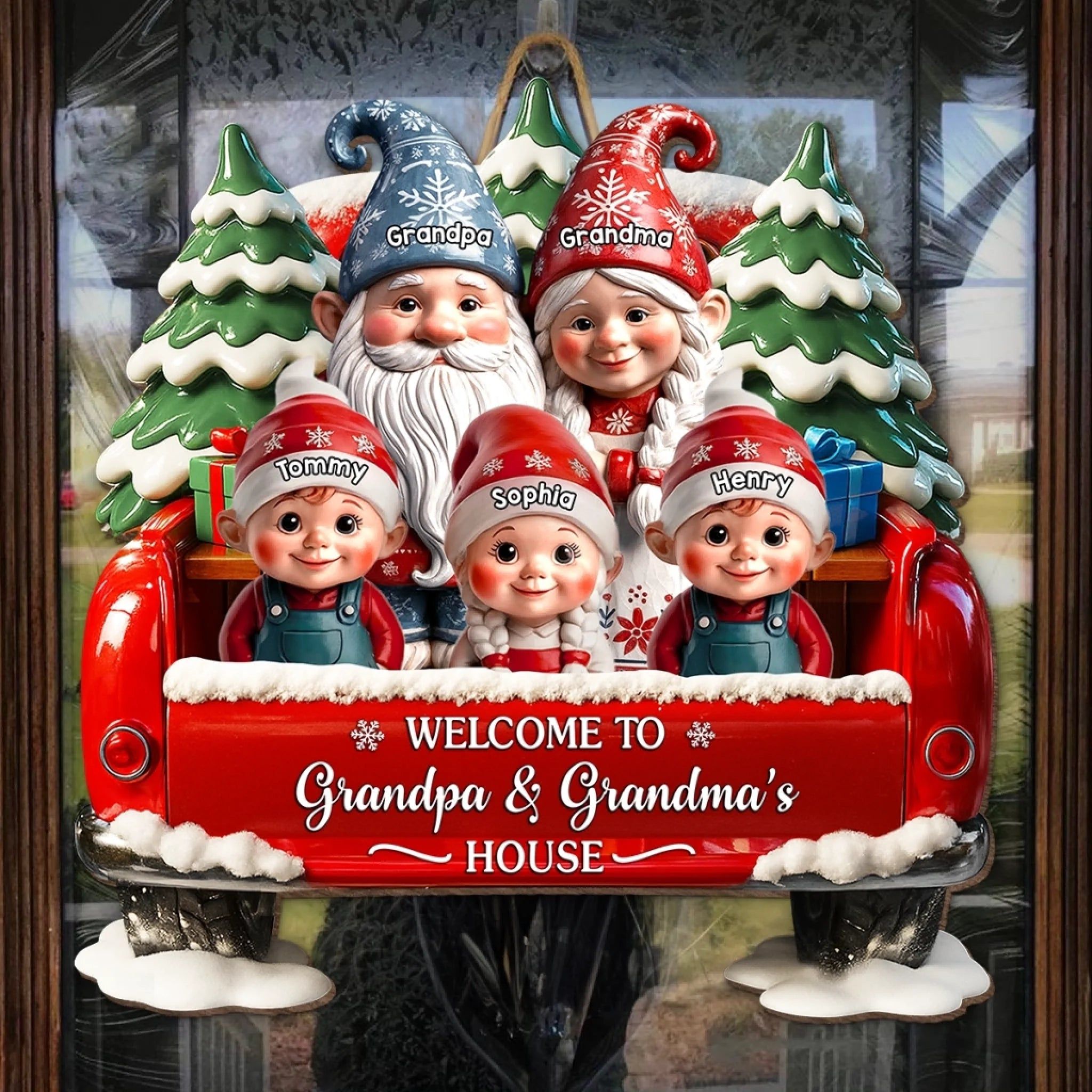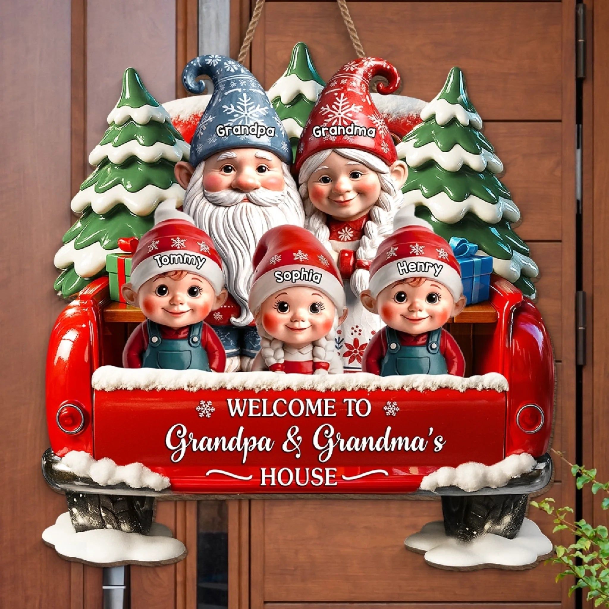 Custom Gnome Wood Sign - Personalized Christmas Birthday Gifts For Grandpa, Grandma - Bless This Home With Laughter