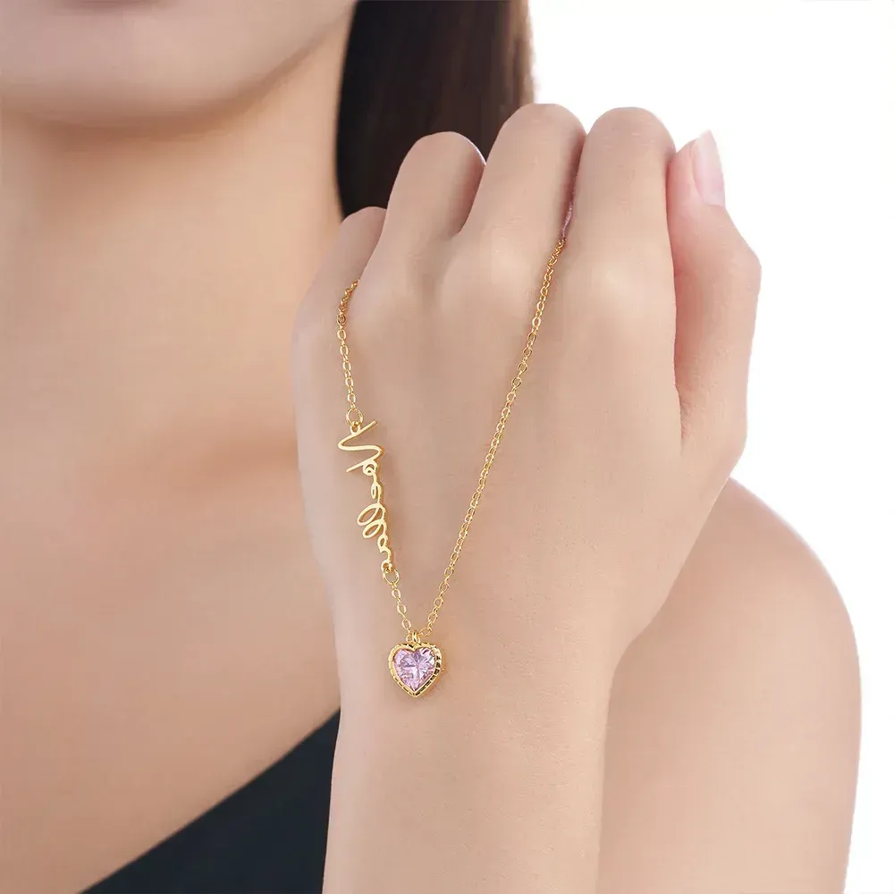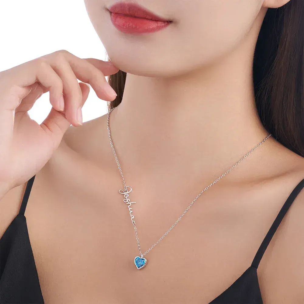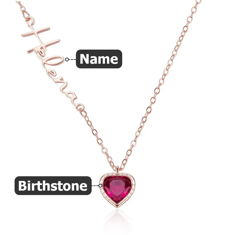 Personalized Heart Birthstone Pendant Necklace with Name Dainty Jewelry Birthday Anniversary Gift for Women Girls