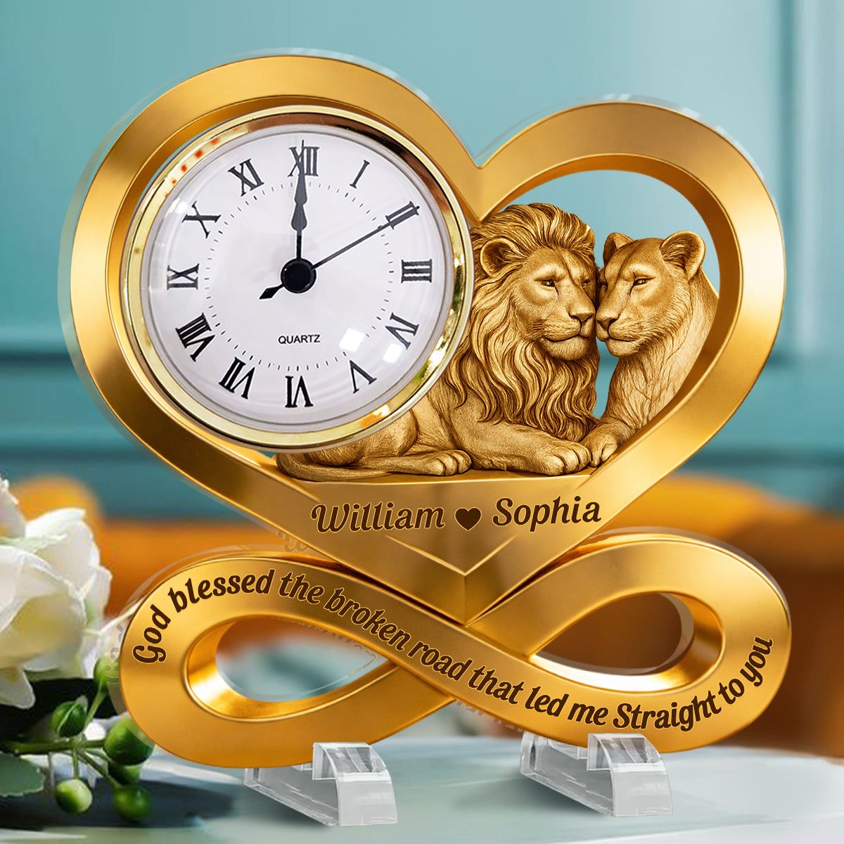 Personalized Lion Couple Infinity Acrylic Desk Clock | Custom Gift for Timeless Love
