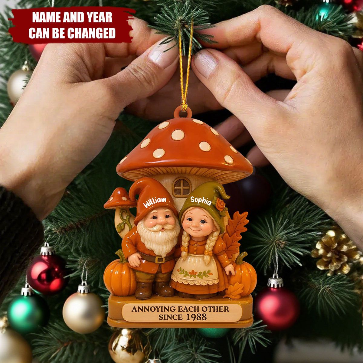 Mushroom House And Dwarf - Personalized Wooden Ornament