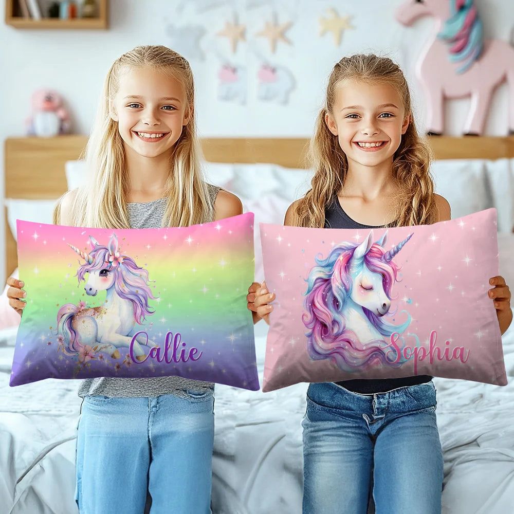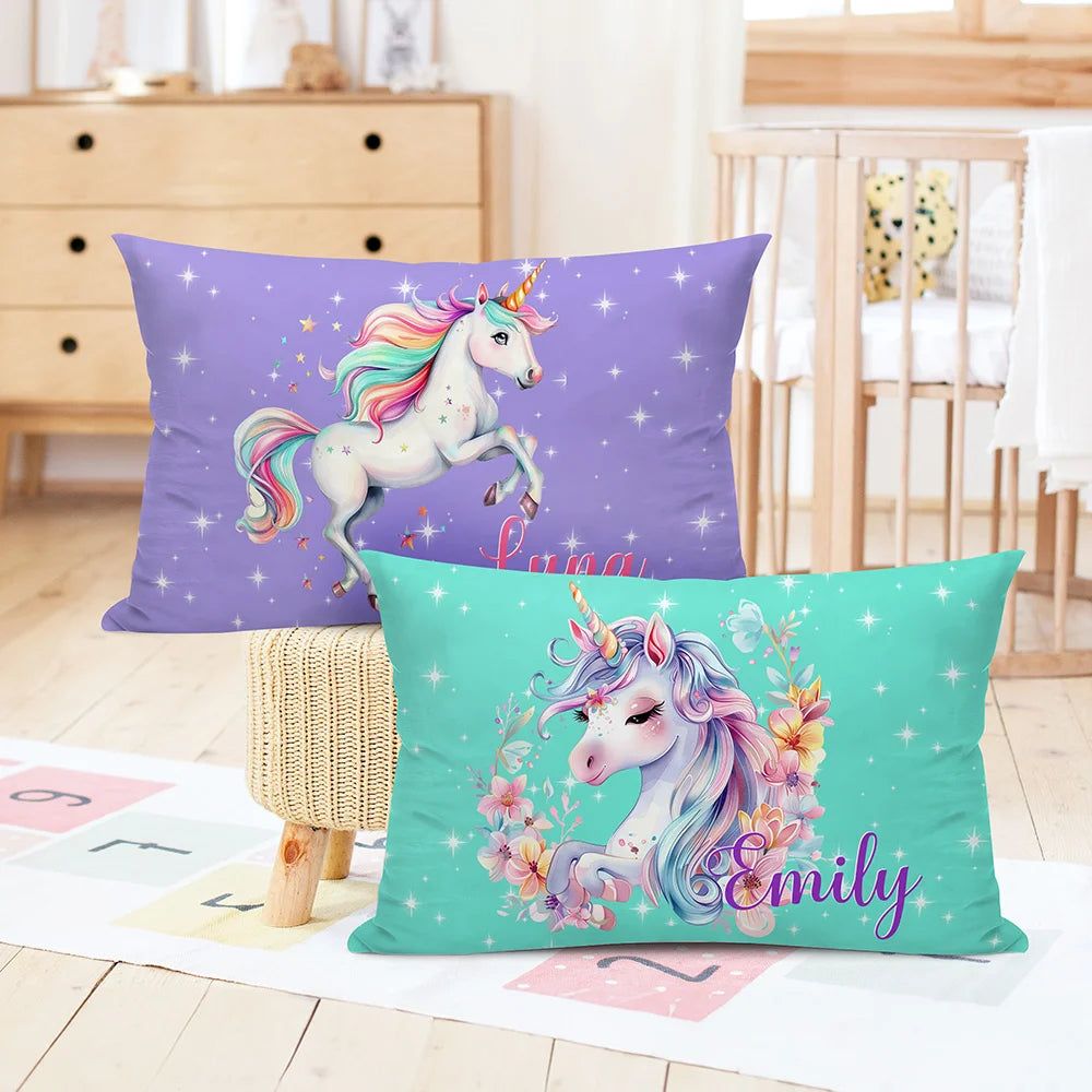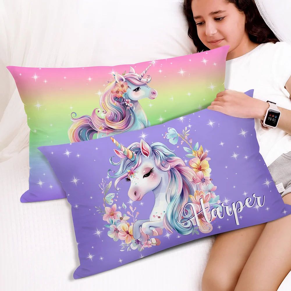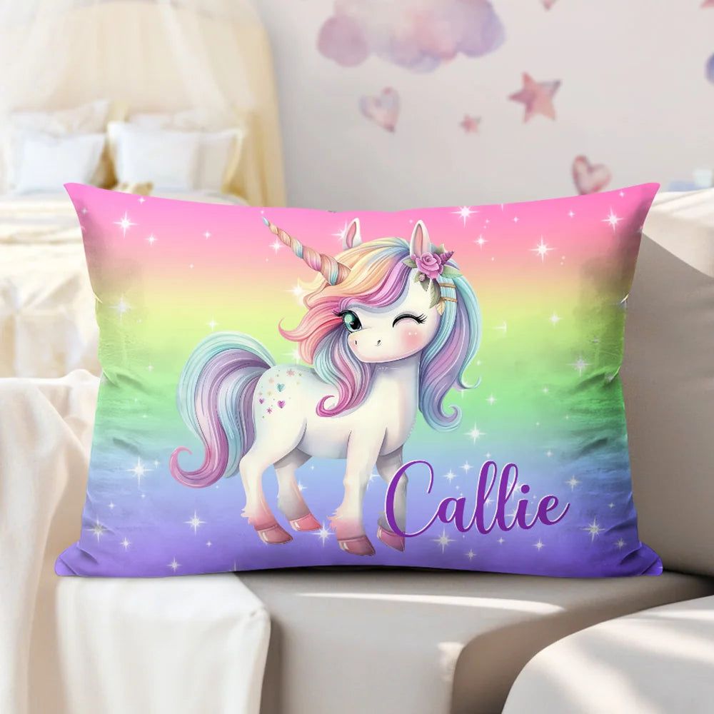 Personalized Fantasy Unicorn Throw Pillow Cover with Name Birthday Room Decor Gift for Kids