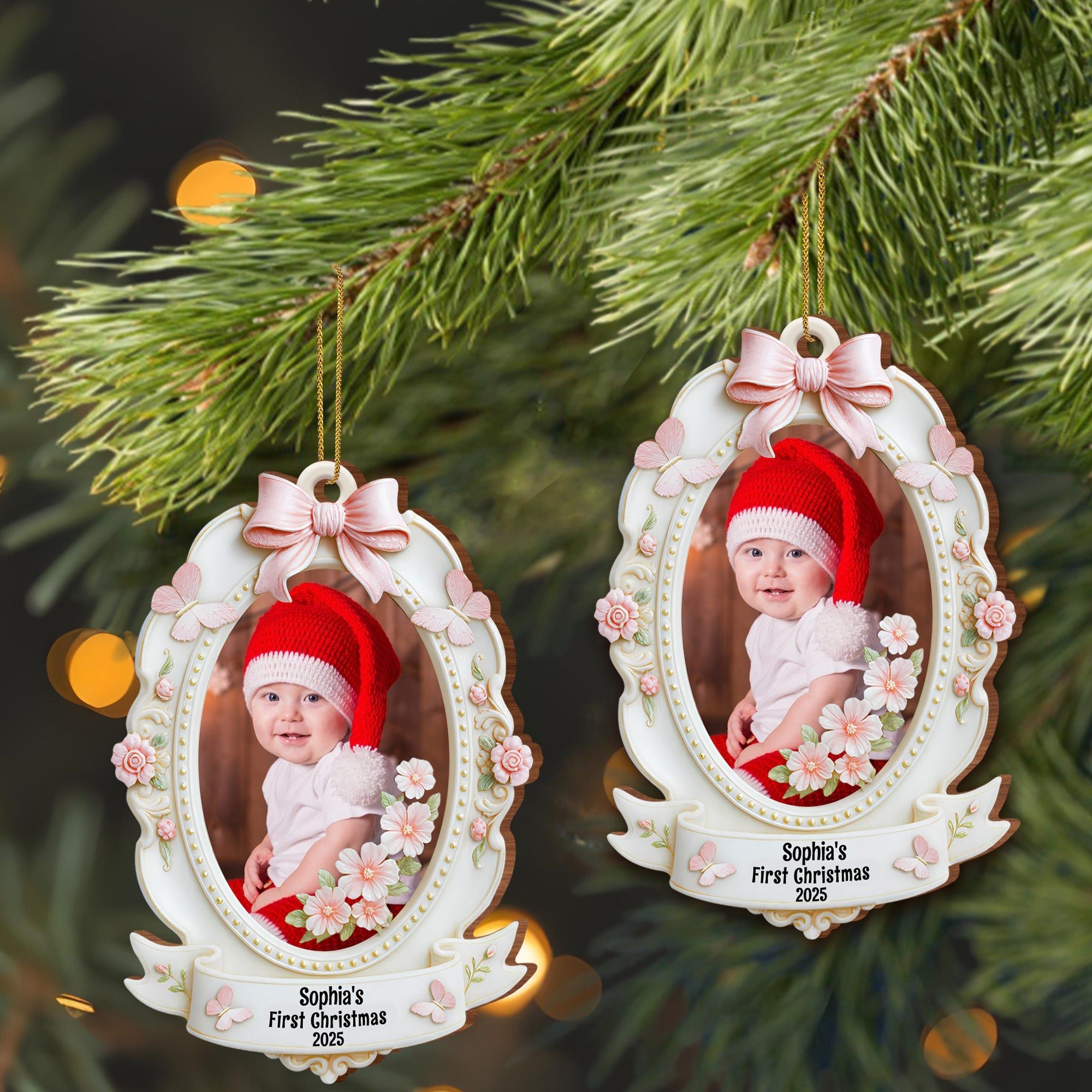 Sophia's First Christmas With Beautiful Flowers - Personalized Custom Wood Ornament, Custom Shaped