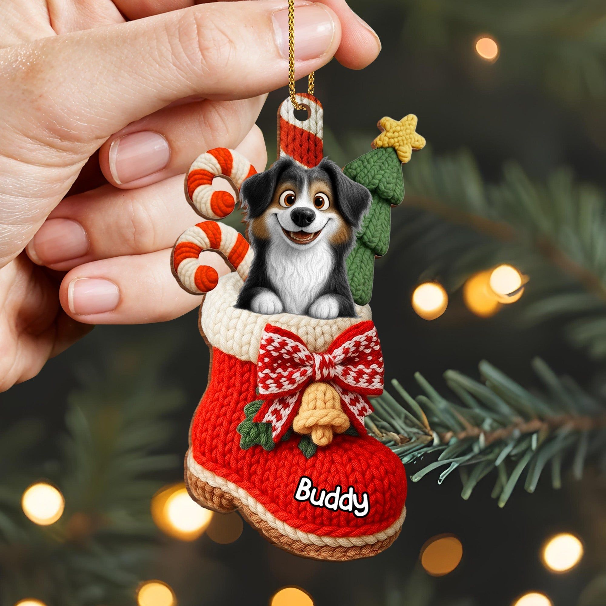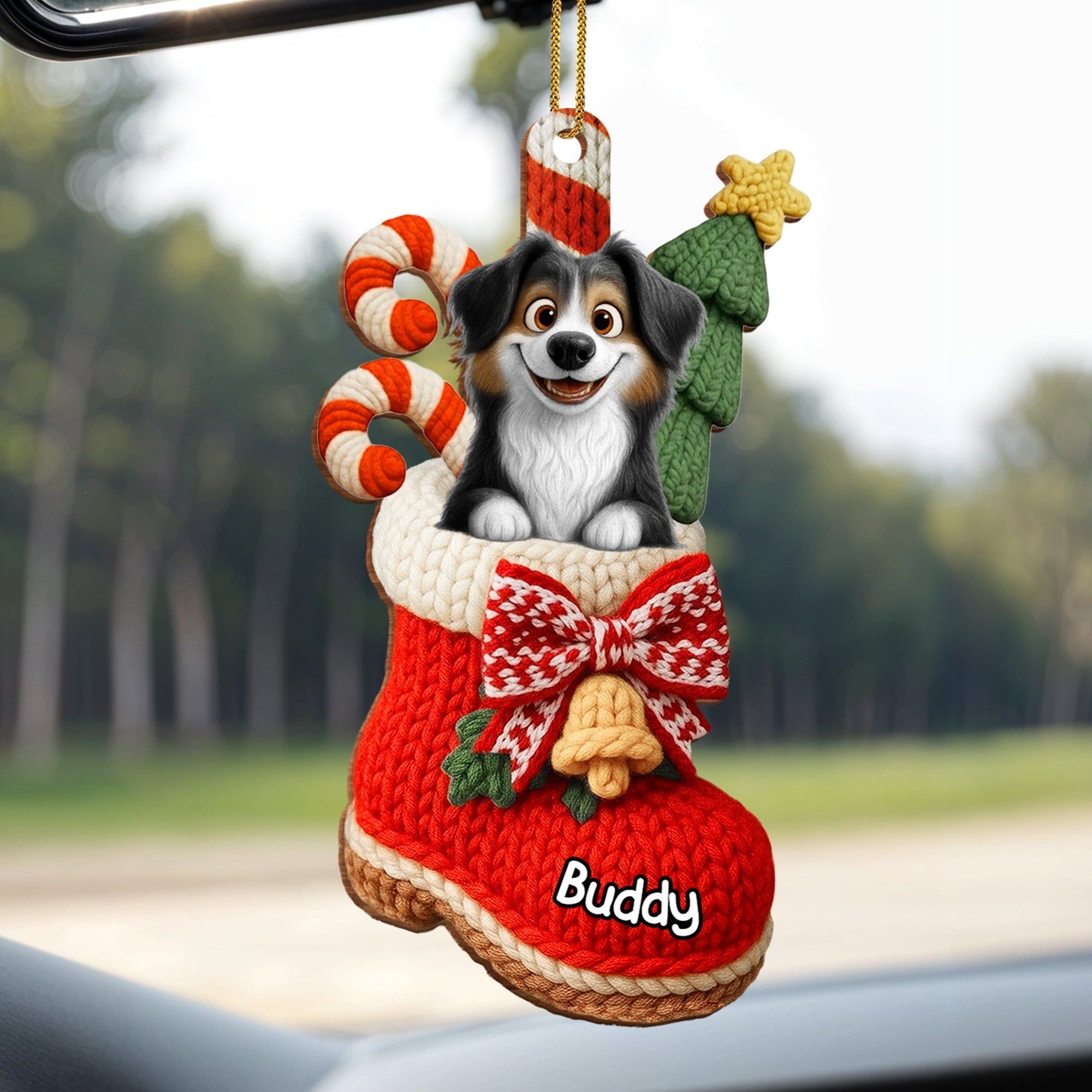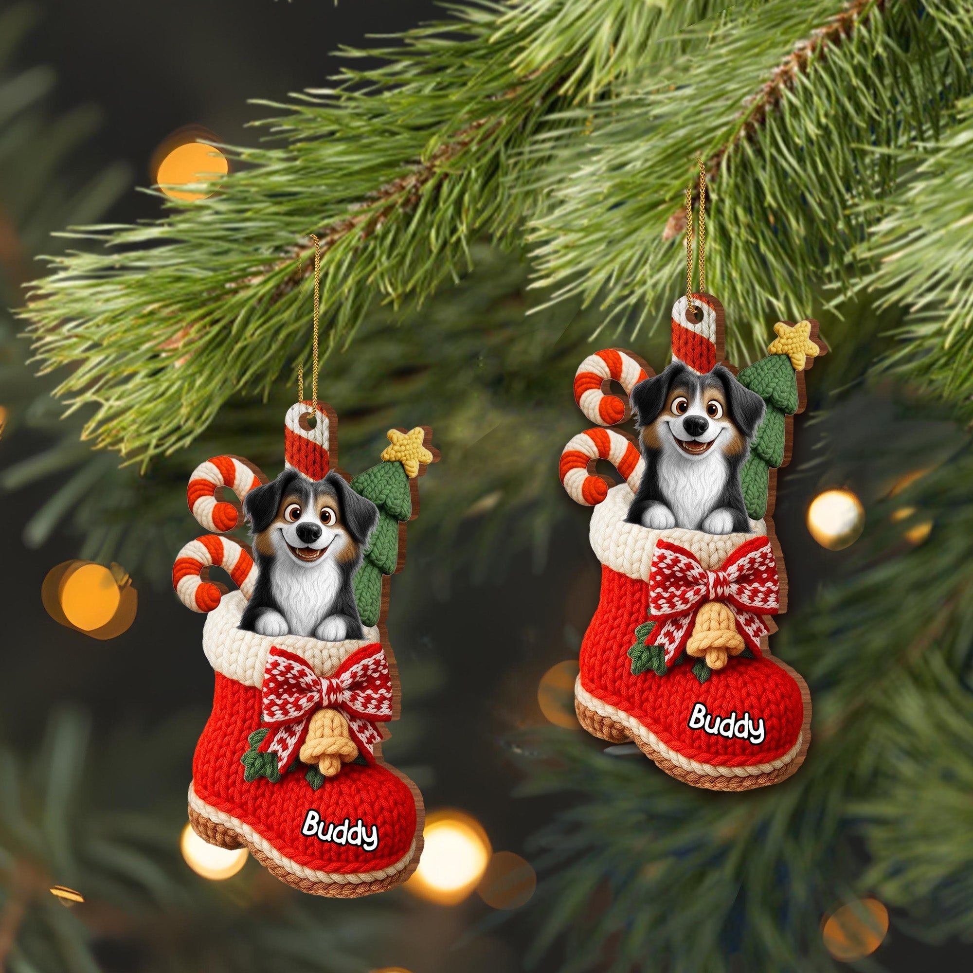 To My Beloved Companion, Christmas Stocking With Dog And Candy Canes - Personalized Custom Wood Ornament, Custom Shaped