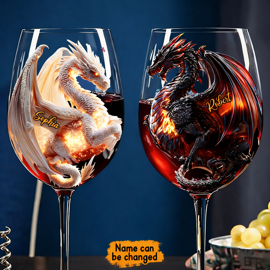 Some love deserves to be visualized-Fantasy Dragon - Personalized Dragon-Shaped Couple-Themed Long-Handled Wine Glass