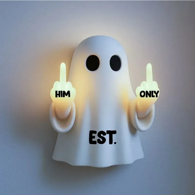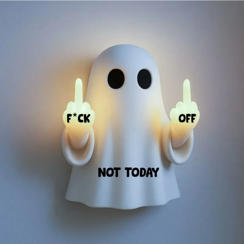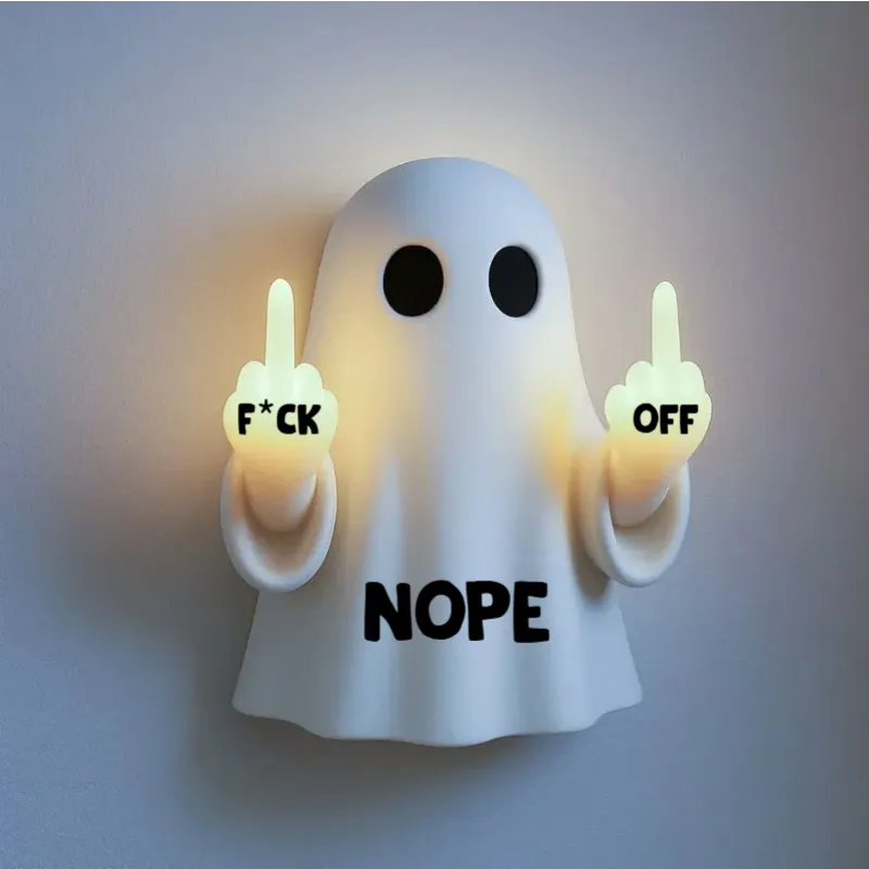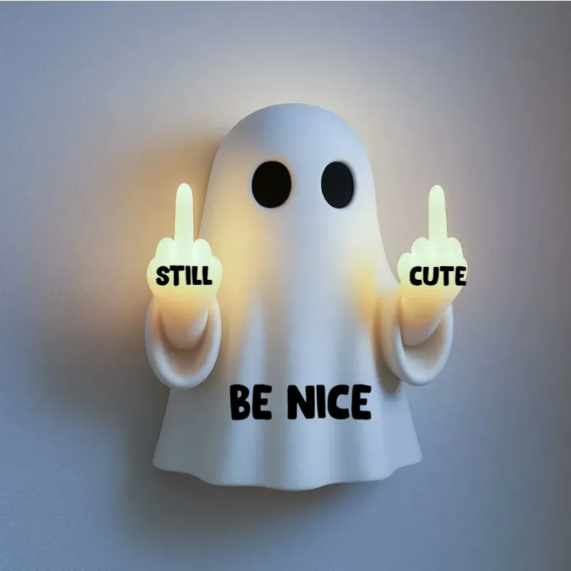 Customizable Cute Ghost Middle Finger LED Night Light | Funny & Stress-Relief Desk and Bedroom Gift