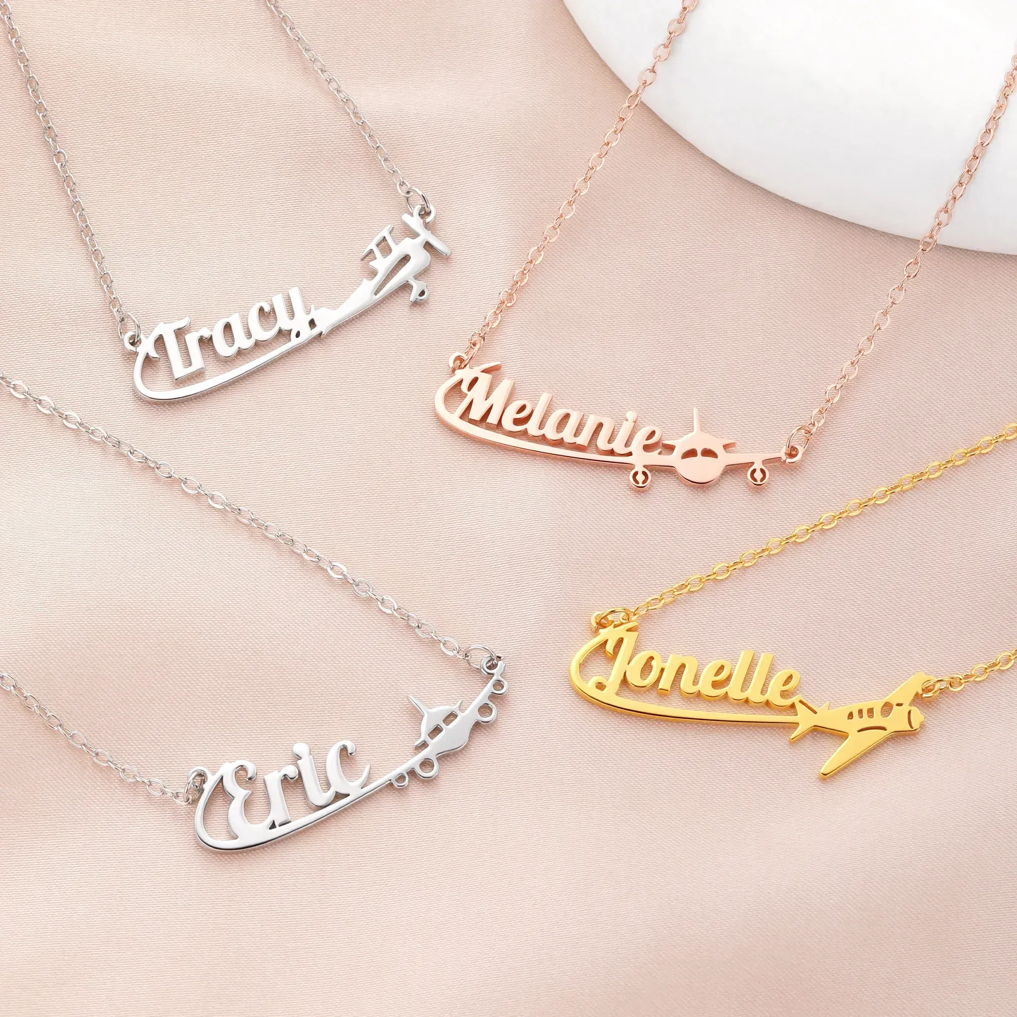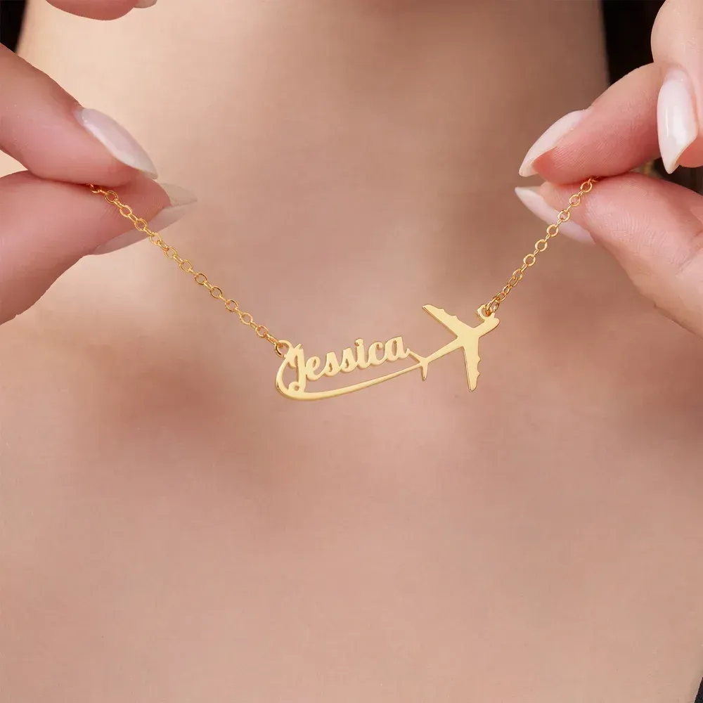 Personalized Airplane Sterling Silver Name Women Necklace Dainty Jewelry Birthday Anniversary Gift for Travel Lovers Pilots Flight Attendants