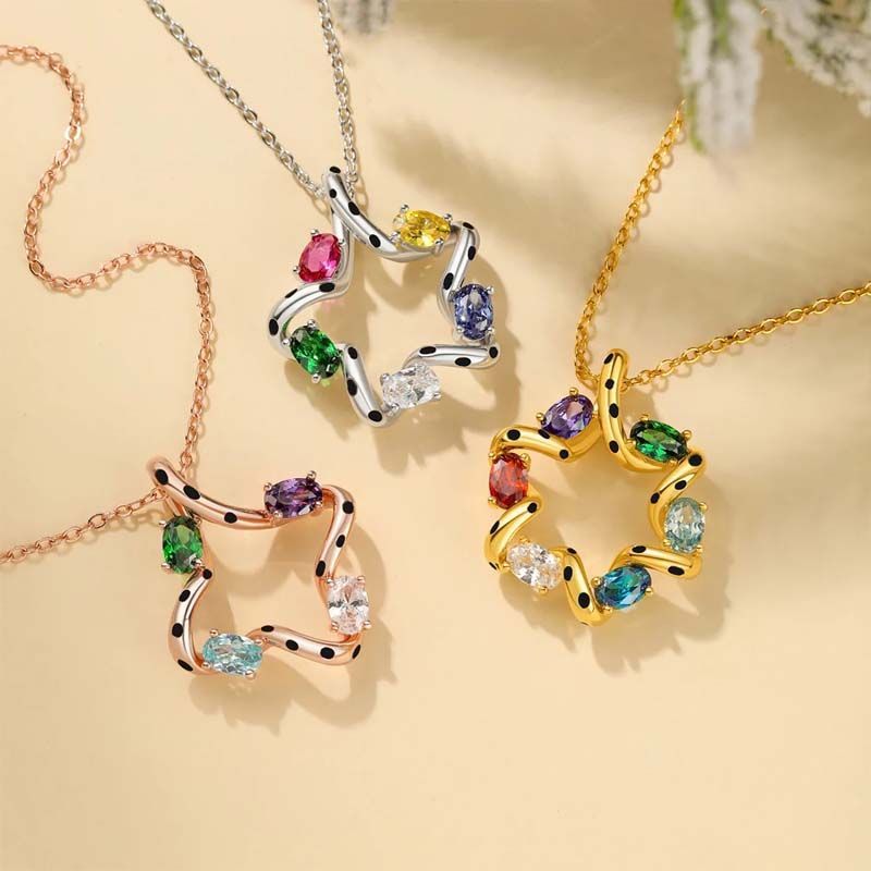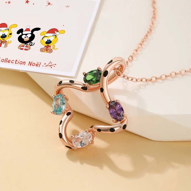 Long Tailed Marsupilami Wreath Necklace with Birthstone - Elegant Gift for Women