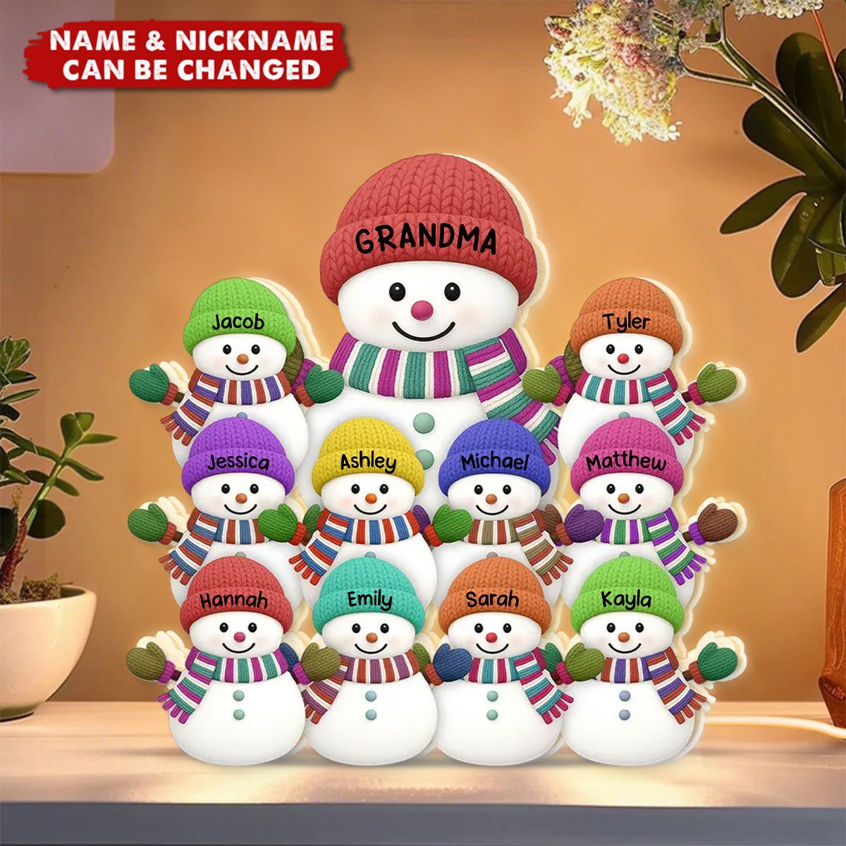 Where grandma’s hugs melt the coldest snowflakes and grandkids’ laughter lights up the longest nights. This personalized LED light box captures your multigenerational magic – a radiant scene where the snowman wears grandma’s scarf, the grandkids’ names glow like winter stars, and every flicker reminds us that family is the brightest light of all. ❄️