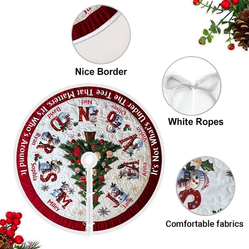 The true magic of Christmas isn't found in wrapped boxes, but in the circled-up laughter around them. This personalized tree skirt becomes your family's sacred gathering place – where little feet pounce on morning surprises and grandparents' eyes twinkle with decades of memories. The greatest gifts were never under the tree, but gathered around it.